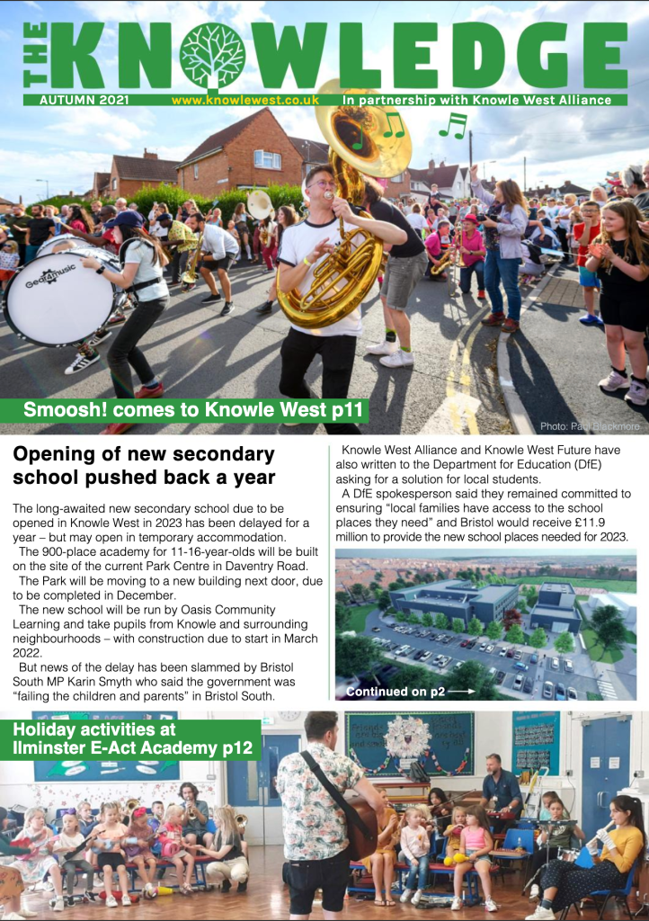The Knowledge is a free newsletter about and for Knowle West. First published in 2002. It is the only free newsletter delivered locally.